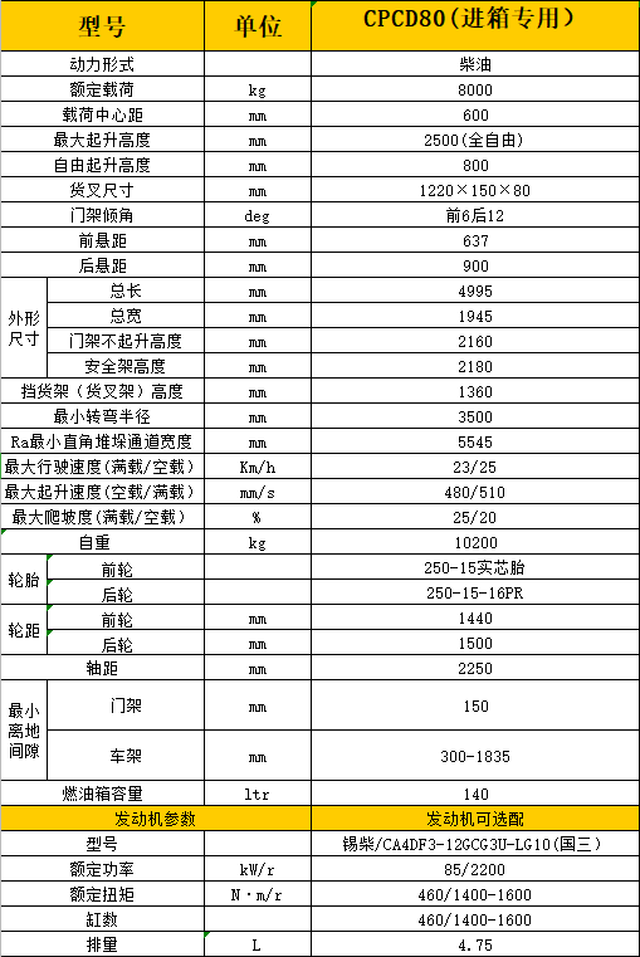 CPCD80進箱專用叉車